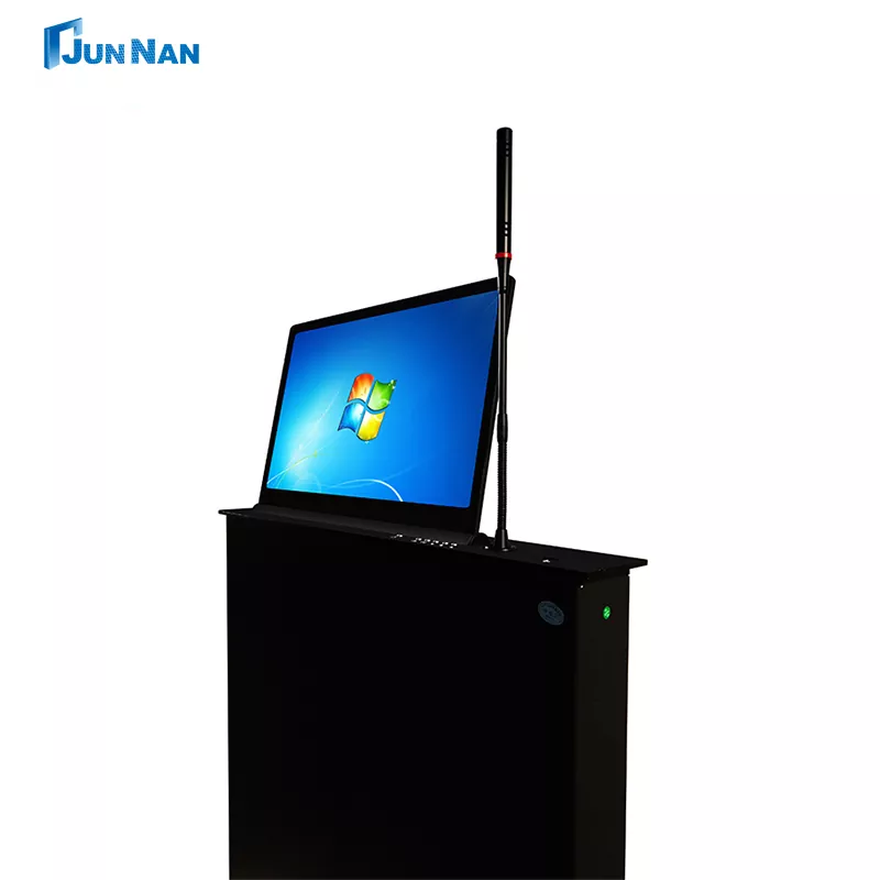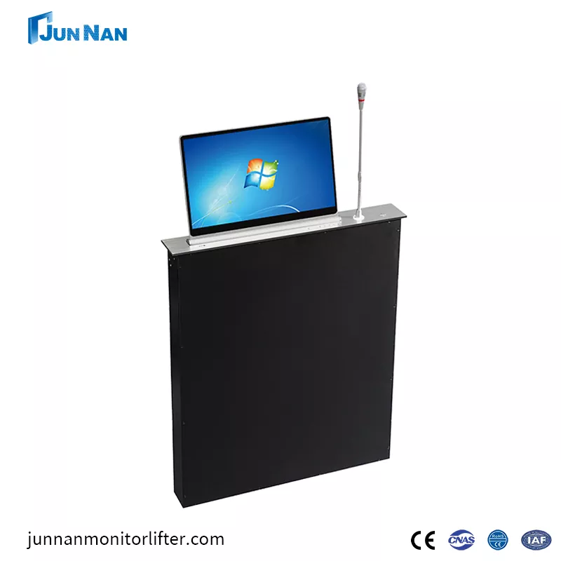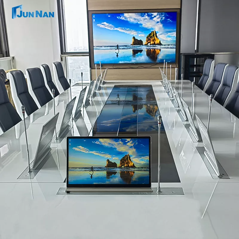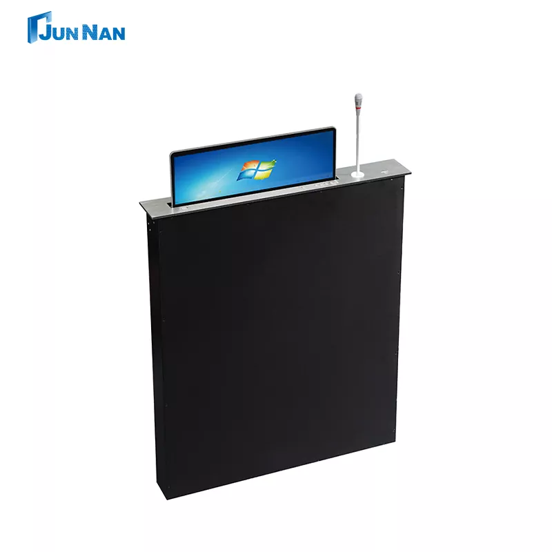 மேம்பட்ட டெஸ்க்டாப் லிப்ட் அல்ட்ரா-தின் டிஸ்ப்ளே பேப்பர்லெஸ் கான்ஃபரன்ஸ் சிஸ்டம் எலக்ட்ரிக் லிப்ட் அனைத்து வகையான காட்சிகளுக்கும் ஏற்றது, எங்களிடம் CNC மெஷின் கட்டிங் டெக்னாலஜி மற்றும் லேசர் தொழில்நுட்பம் உள்ளது, சமீபத்திய கான்ஃபரன்ஸ் டேபிள் டெஸ்க்டாப் லிஃப்டிங் டிஸ்ப்ளே தொழில்நுட்பம் தயாரிப்பு மிக உயர்தரமாக இருப்பதை உறுதி செய்கிறது. உபகரணங்கள் திறம்பட இடத்தை சேமிக்க மற்றும் டெஸ்க்டாப்பை இன்னும் நேர்த்தியாக செய்ய முடியும். அதே நேரத்தில், அதன் உயரத்தை சரிசெய்யக்கூடிய அம்சம் வெவ்வேறு பயனர்களின் தேவைகளைப் பூர்த்தி செய்து, பணி வசதியை மேம்படுத்துகிறது. லிஃப்டர் முக்கியமாக மூன்று பகுதிகளால் ஆனது: காட்சி, அடைப்புக்குறி மற்றும் கட்டுப்பாட்டு பெட்டி. திரையின் சரிசெய்தலை உணர டிஸ்ப்ளே மேலும் கீழும் உருட்டுகிறது, திரையை சரிசெய்ய ஒரு சிறிய பெட்டி அடைப்புக்குறியில் வைக்கப்பட்டுள்ளது, மேலும் எல்சிடி மற்றும் சென்சார்கள் போன்ற கூறுகளுடன் கட்டுப்பாட்டு பெட்டி அமைக்கப்பட்டுள்ளது. எங்களின் டெஸ்க்டாப் லிஃப்டிங் டிஸ்ப்ளே அனைத்தும் சீனாவில் தயாரிக்கப்பட்டது, மொத்தமாக வாங்குவதற்கு கிடைக்கிறது, வாடிக்கையாளர்களுக்கு தனிப்பட்ட முறையில் தனிப்பயனாக்கலாம் மற்றும் வாடிக்கையாளர்களுக்கு விரைவாக டெலிவரி செய்ய போதுமான டெஸ்க்டாப் லிஃப்டிங் டிஸ்ப்ளே கையிருப்பில் உள்ளது. எங்களிடம், ஜுன்னான் கருவிகள், CCC, CE சான்றிதழ், ROHS, ISO சான்றிதழ் போன்ற பல்வேறு சான்றிதழ்கள் மற்றும் சான்றிதழ்களைக் கொண்டுள்ளோம். எங்கள் தயாரிப்புகள் பாதுகாப்பானவை மற்றும் ஏற்றுமதித் தகுதியுடன் உயர் தரம் கொண்டவை, மேலும் நாங்கள் சாதகமான விலையில் நேரடியாக தொழிற்சாலையில் இருக்கிறோம். எங்கள் சொந்த தொழிற்சாலை, பல ஆண்டுகளாக வணிகத்தில் உள்ளது.